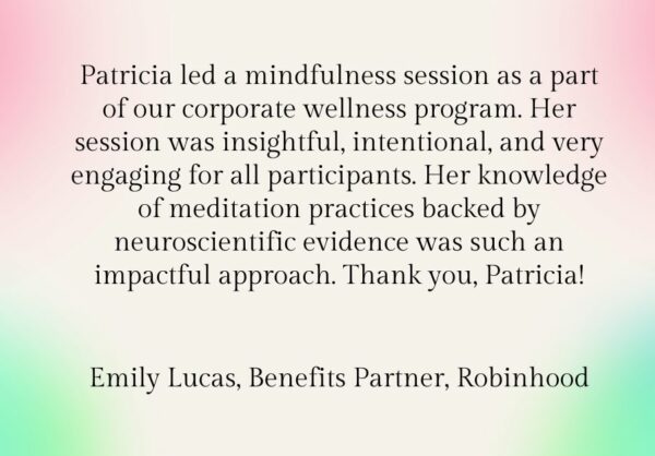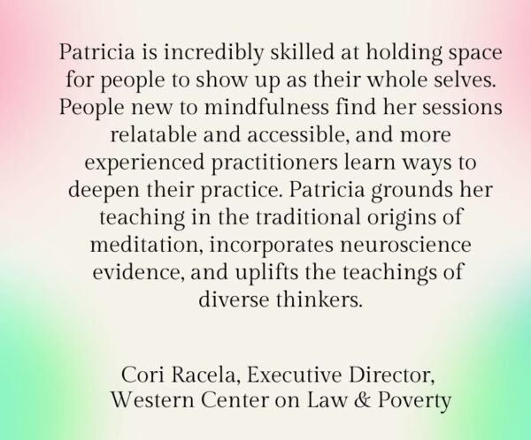 I am a mindfulness and meditation guide for individuals and organizations. My offerings range from single sessions and workshops to courses and retreats. My teaching is anchored in Buddhist tradition and contemporary neuroscience evidence. I source from diverse wisdom and liberation traditions as well. I focus on how we can translate teachings that may seem abstract or unattainable into embodied practices for truly living more mindfully and kindly in our daily lives, and for taking wise, compassionate action in the world. I post my public mindfulness offerings in Events. To book a private mindfulness session or series for you or your organization, please contact me.